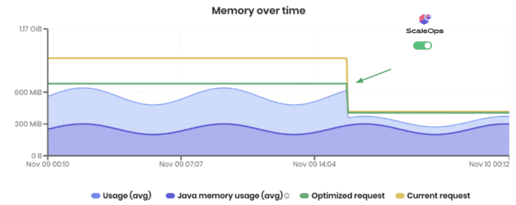 ScaleOps analyzes Java memory behavior, including heap activity, garbage collection, and OOM patterns, and dynamically manages both Java heap and workload memory requests in real time.